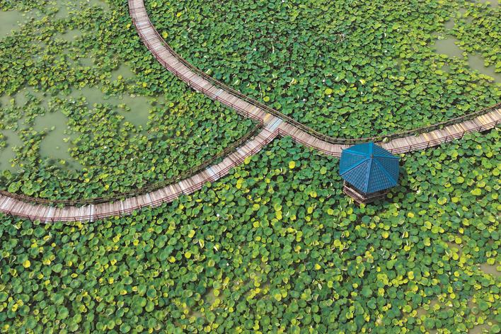 7月11日,濉溪縣百善鎮道口村500畝荷塘月色趣園風景如畫。盛夏時節,濉溪縣百善鎮道口村的荷塘月色趣園景色怡人,荷葉田田,為炎炎夏日增添一抹清涼詩意。 據了解,百善鎮道口村荷塘月色趣園自2020年7月開園以來,每年舉辦一屆旅游文化節,省內外游客慕名前來賞荷、采蓮,帶動了村民就業和村集體經濟發展,成了鄉村振興的新引擎。